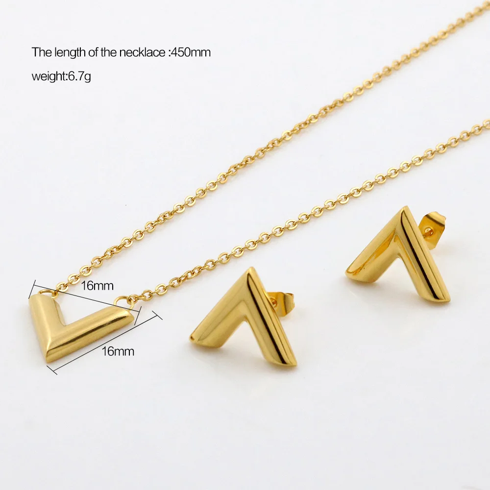 Name:Luxury Brand Letter V Charm Gold Earring Necklace Jewelry Sets